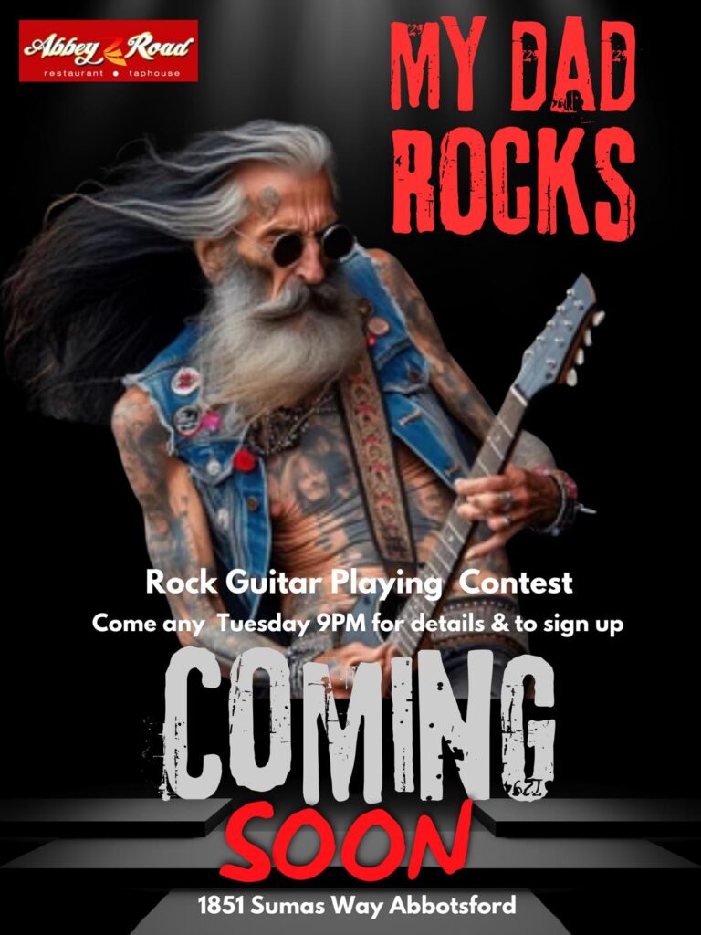 The Rock Guitar Playing Contest is coming soon to Abbey Road! For more information and to sign up, come by any Tuesday at 9 PM!